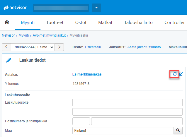 When a sales invoice is imported via api, in many cases the customer's billing and delivery information is imported with the sales invoice material, which is visible on the sales invoice. If so, the invoice does not use other information from Netvisor's customer card except for the business id and e-invoice/email invoice address. In this case, the information displayed on the invoice may differ from the information on Netvisor's customer card if the customer details have not been updated between Netvisor and the other system.