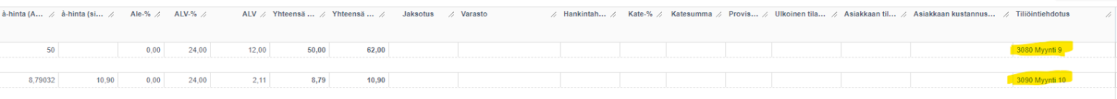 The api allows for a posting suggestion to be given for the product rows on the sales invoice. If this is provided, the sales account is not read from the product's settings. You can see the posting suggestion on Netvisor's sales invoice: