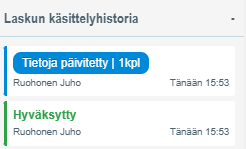 Netvisor's api allows for handling purchase invoices via api as well. From another software, actions such as approval, factual verification, or posting can be done via api for a purchase invoice in Netvisor. Actions done via api will appear in the purchase invoice's processing history in the same way as actions done through Netvisor's user interface: