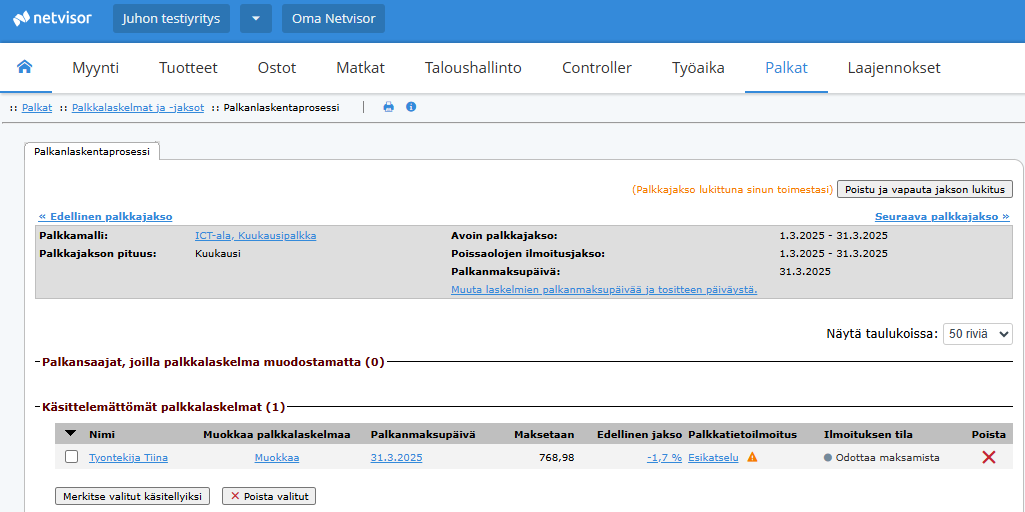 Location in Netvisor: Payroll -> Payslips and pay periods