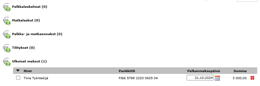 Location in Netvisor: Payroll -> Payroll -> Pay salaries -> External payments