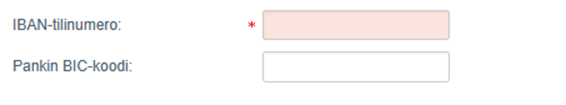 Kun tämä asetus otetaan käyttöön, kaikkien palkansaajien perustietoihin tilinumeron syöttämisestä tulee pakollista. Tämä voidaan todeta myös kentän edessä olevasta punaisesta tähdestä.