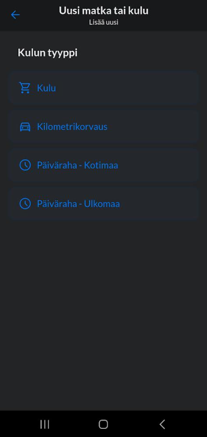 Matkat ja kulut > Uusi matka tai kulu