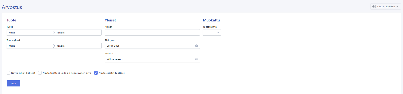 Avainsanat: Varastonarvoraportti, Hankintahinta, FIFO, Excel-lataus