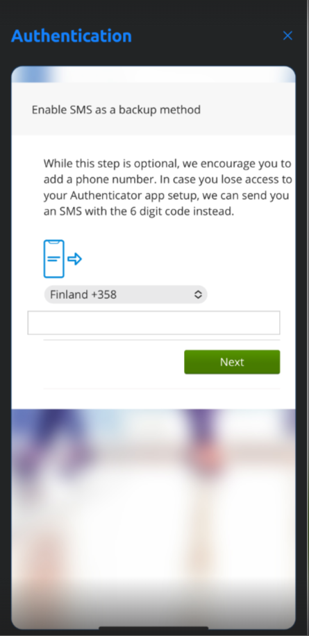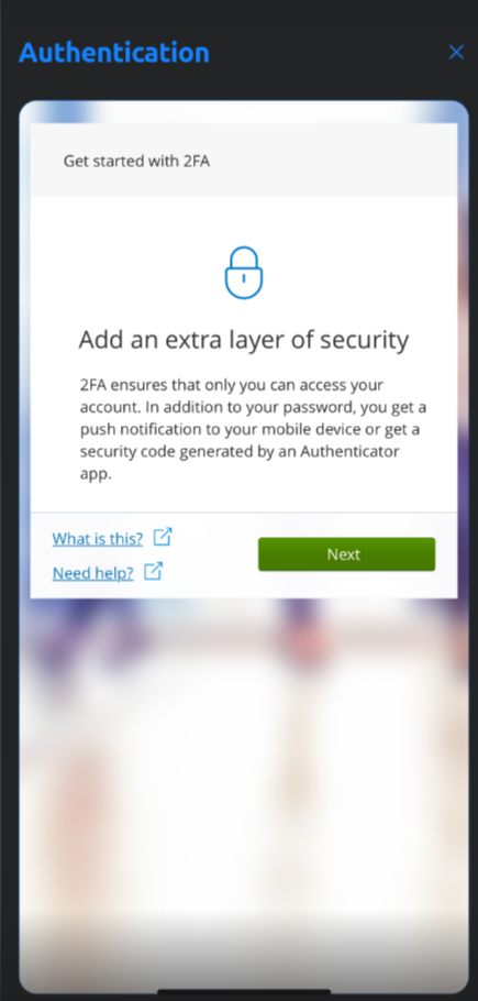 Tämän jälkeen alkaa kaksivaiheisen tunnistautumisen (2FA) käyttöönotto.