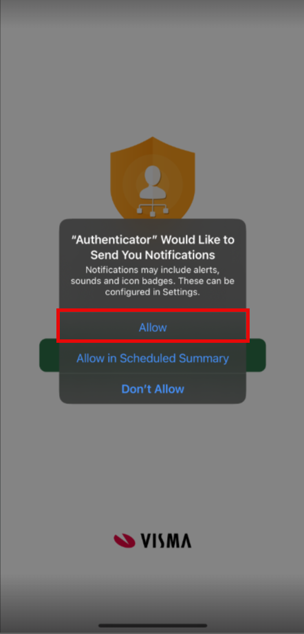 Visma Authenticatorissa tulee hyväksyä ilmoitukset, jotta push-notifikaatiot toimivat ja voit hyväksyä kirjautumisen.