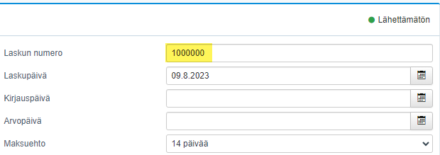 Kun luot Netvisorissa laskun, muuta luodulle lähettämättömälle laskulle numeroksi 1000000. Näin seuraava Netvisorissa luotu lasku saa automaattisesti numeron 1000001.