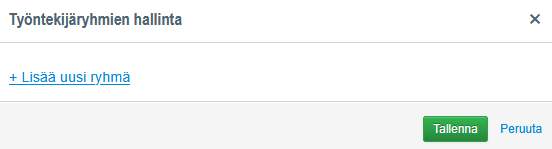 Kyllä. Lisää ja muokkaa ryhmiä Palkanlaskennan asetuksissa Hallitse-painikkeesta avautuvassa Työntekijäryhmien hallinta -modaalissa.