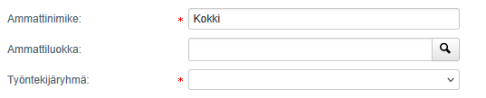 Valitse pudotusvalikosta ryhmä, johon palkansaaja kuuluu. Valikossa näkyvät kaikki Palkanlaskennan asetuksissa luodut työntekijäryhmät. Kenttä on pakollinen, kun palkka-avoimuusraportointi on käytössä. Kun perustat uuden palkansaajan, täytä tämä kenttä pakollisena tietona.