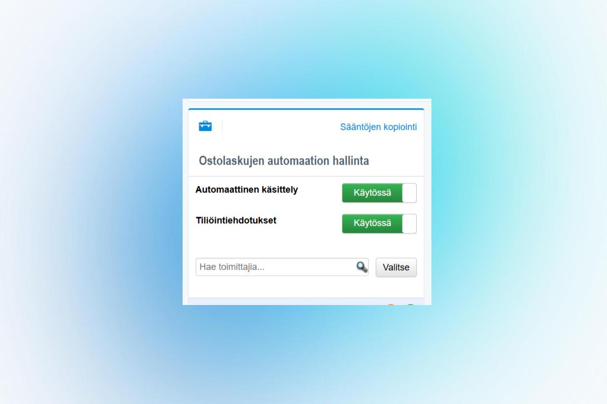 Julkaisimme uuden automaatiosääntöjen kopiointitoiminnon. Sen avulla voit kopioida sekä yhteisiä että toimittajakohtaisia sääntöjä yrityksen sisällä tai yrityksestä toiseen. Lue toiminnosta lisää ohjeestamme.