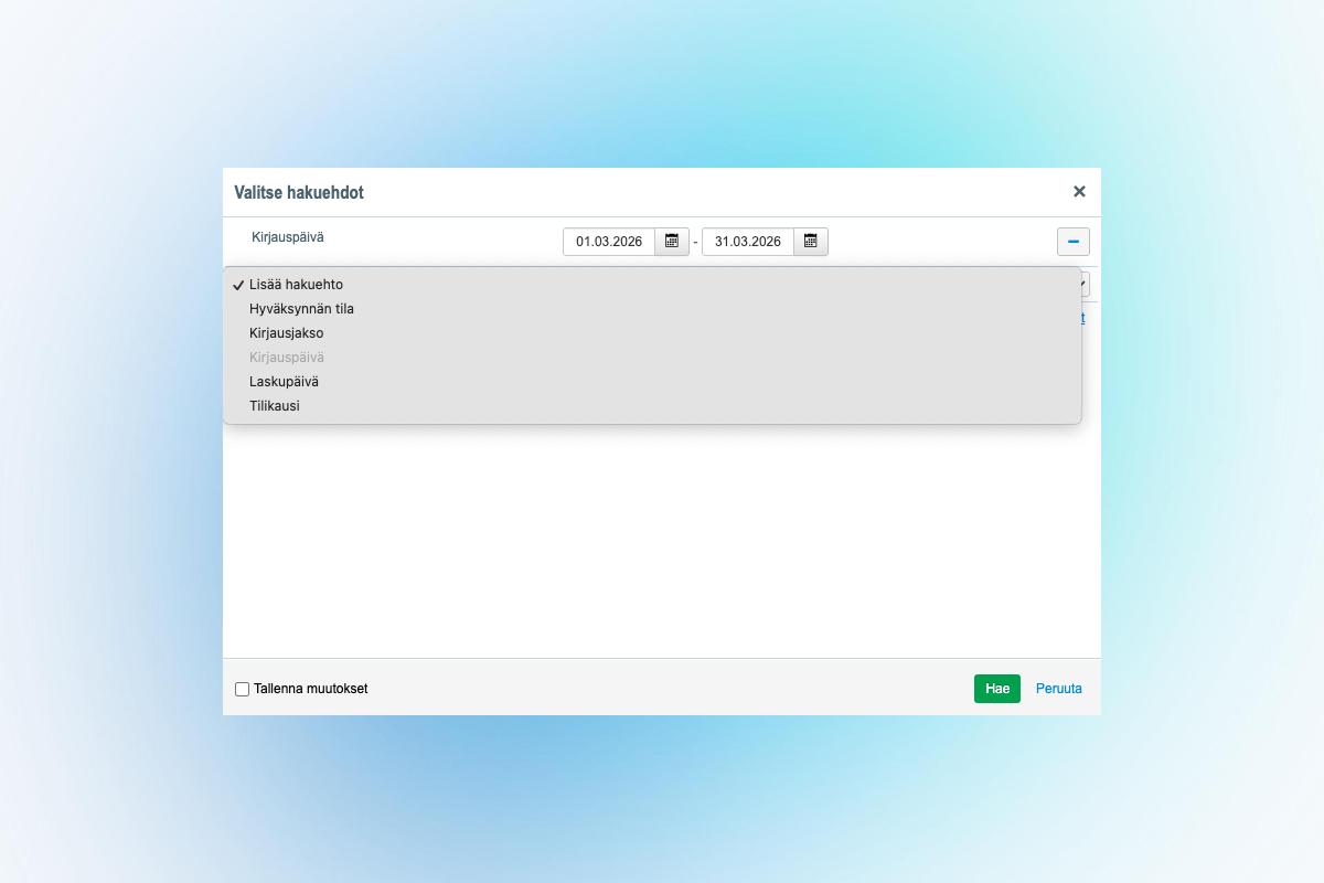 Avoimet myyntilaskut- ja Myyntilaskuluettelo-näkymiin on lisätty uusia hakuehtoja:
