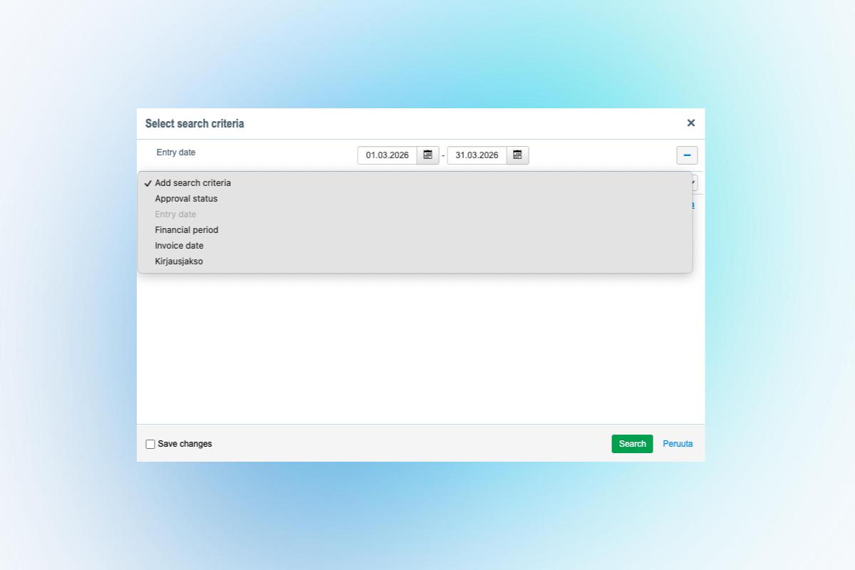 Lisäsimme laskun "Hyväksynnän tila" -sarakkeen sekä mahdollisuuden rajata raporttia hyväksynnän tilan perusteella. Nyt raporttia voidaan näppärästi rajata myös esimerkiksi laskun hyväksynnän tilan mukaan ja halutuista hakuehdoista voidaan tallentaa myös itselleen pikalinkki toistuvaa raportointitarvetta varten.