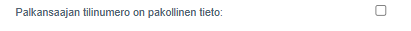 Du kan ställa in att löntagarens kontonummer är obligatoriskt i inställningarna för löneberäkning:
