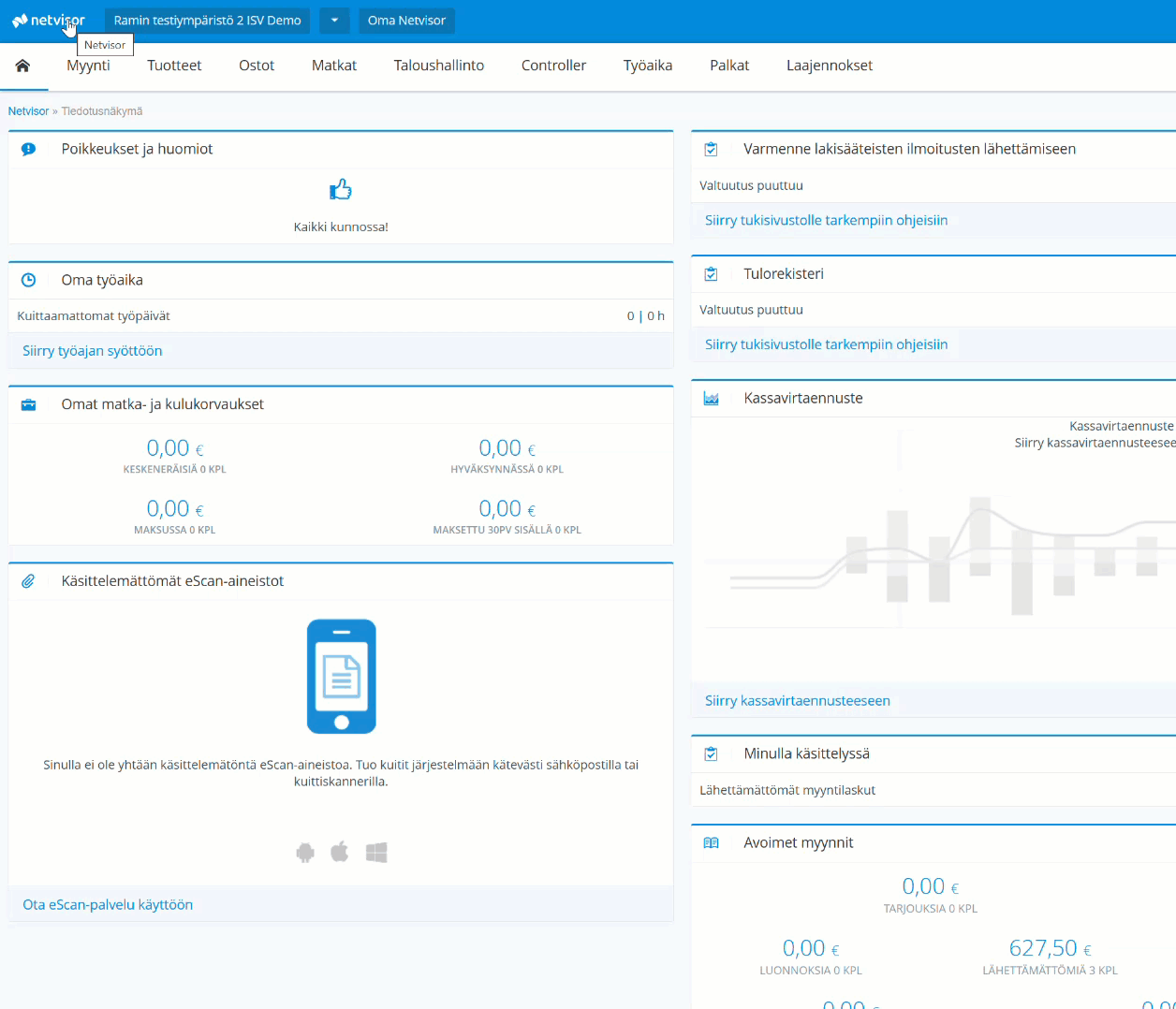 Användningen av programgränssnittstjänsten ingår i Professional-, Premium- och Lön -paketen. Netvisor Store-tillägg, import av fakturamaterial i finvoice-format samt Smart Excel-formulär kan också användas med Basic- och Core-paketen.