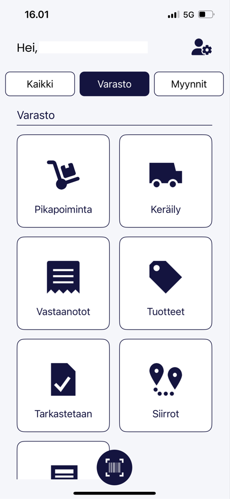 Användare med fullständiga rättigheter till Rackbeat har omfattande användningsmöjligheter även i mobilapplikationen. Mobilapplikationen innehåller Lager- och försäljningssektionerna. Obs! Applikationsvyn och texter kan skilja sig något mellan Android- och iOS-operativsystemen.