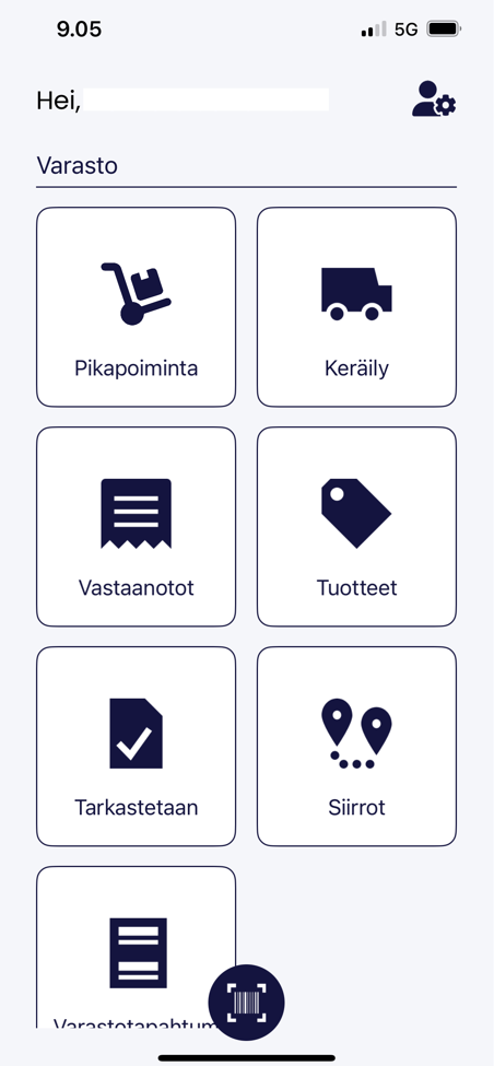 - Mottagning - Listar alla beställningar som väntar på mottagning. Inköpsordern måste ha skapats som mottagningsrader för att raderna ska visas i applikationens mottagningsvy. Om inköpsordern delvis har mottagits, måste även den återstående mottagningen skapas, så att mottagningen också visas i mobilen. I applikationen kan man göra delmottagning genom att ändra antalet på raden. Med Mottag-funktionen når produkterna lagret. Om produkten har batch- eller serienummer i bruk, leder applikationen till att lägga till numren innan mottagningen görs.
